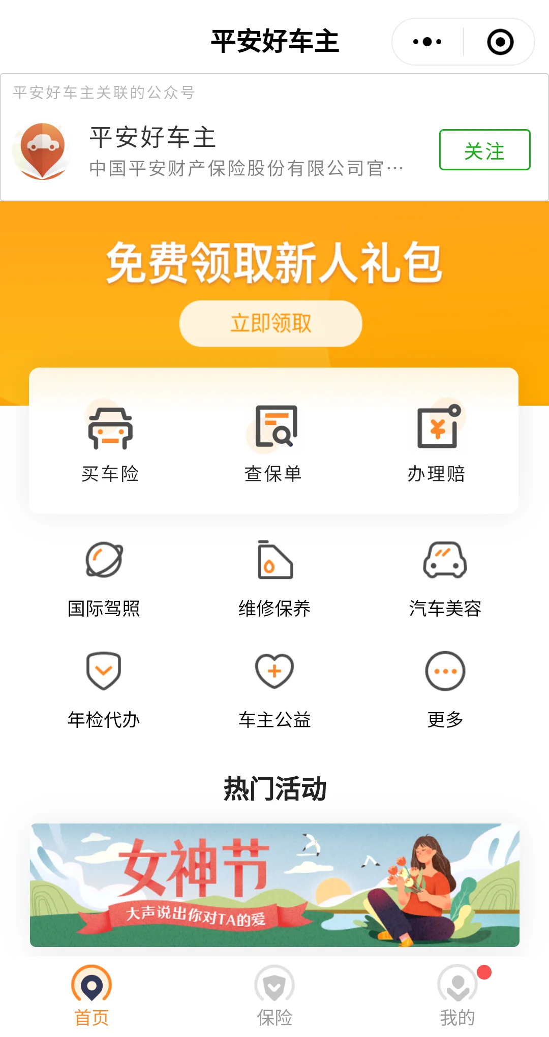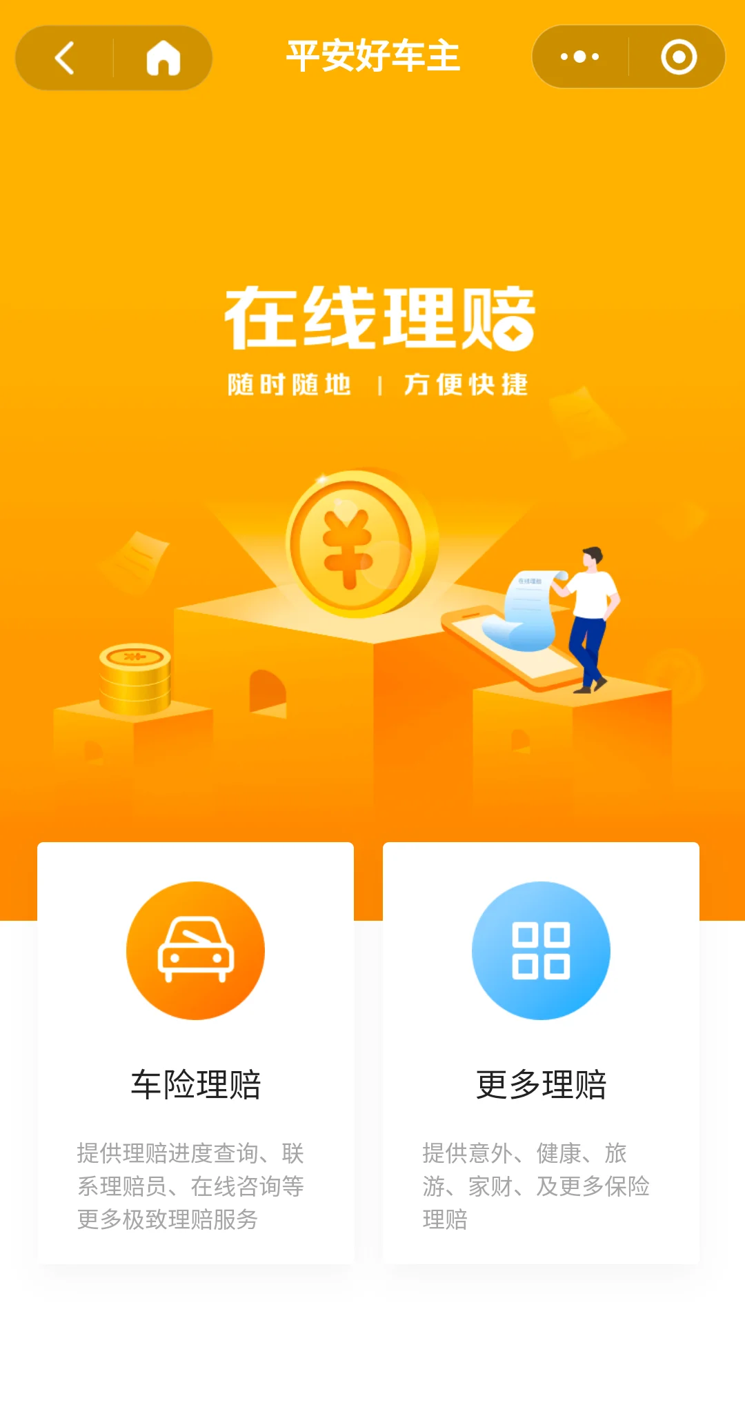 平安车险官方小程序,提供买车险、续保、办理赔服务。