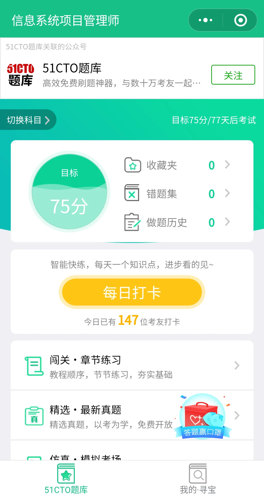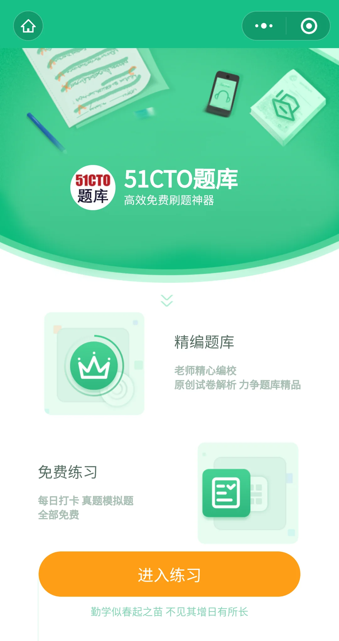 14 年 lT 计算机学习网站 51CTO 旗下免费刷题小程序,现已入驻软考题库、计算机二级题库,提供历年真题、模拟题、每日一练等服务。