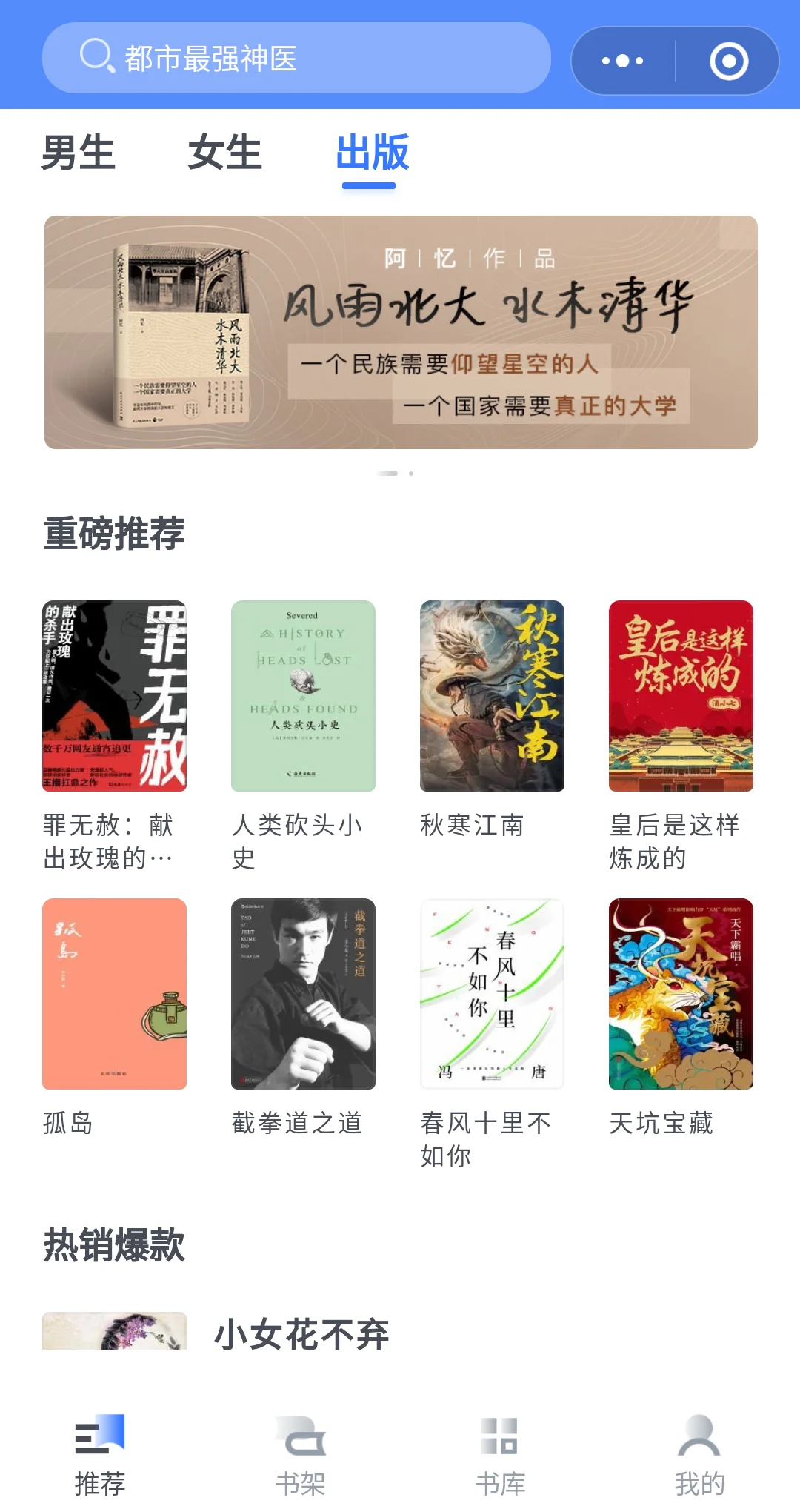 连载全本电子书、出版图书在线阅读,提供言情、玄幻、都市、历史、网络文学热门小说免费看。