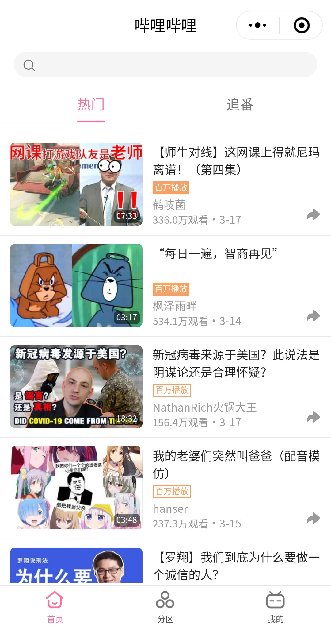 bilibili(哔哩哔哩)是基于视频分享的互联网社区,官方小程序集结海量精彩内容的视频,致力于ACG等娱乐领域内原创及二创的内容传播。