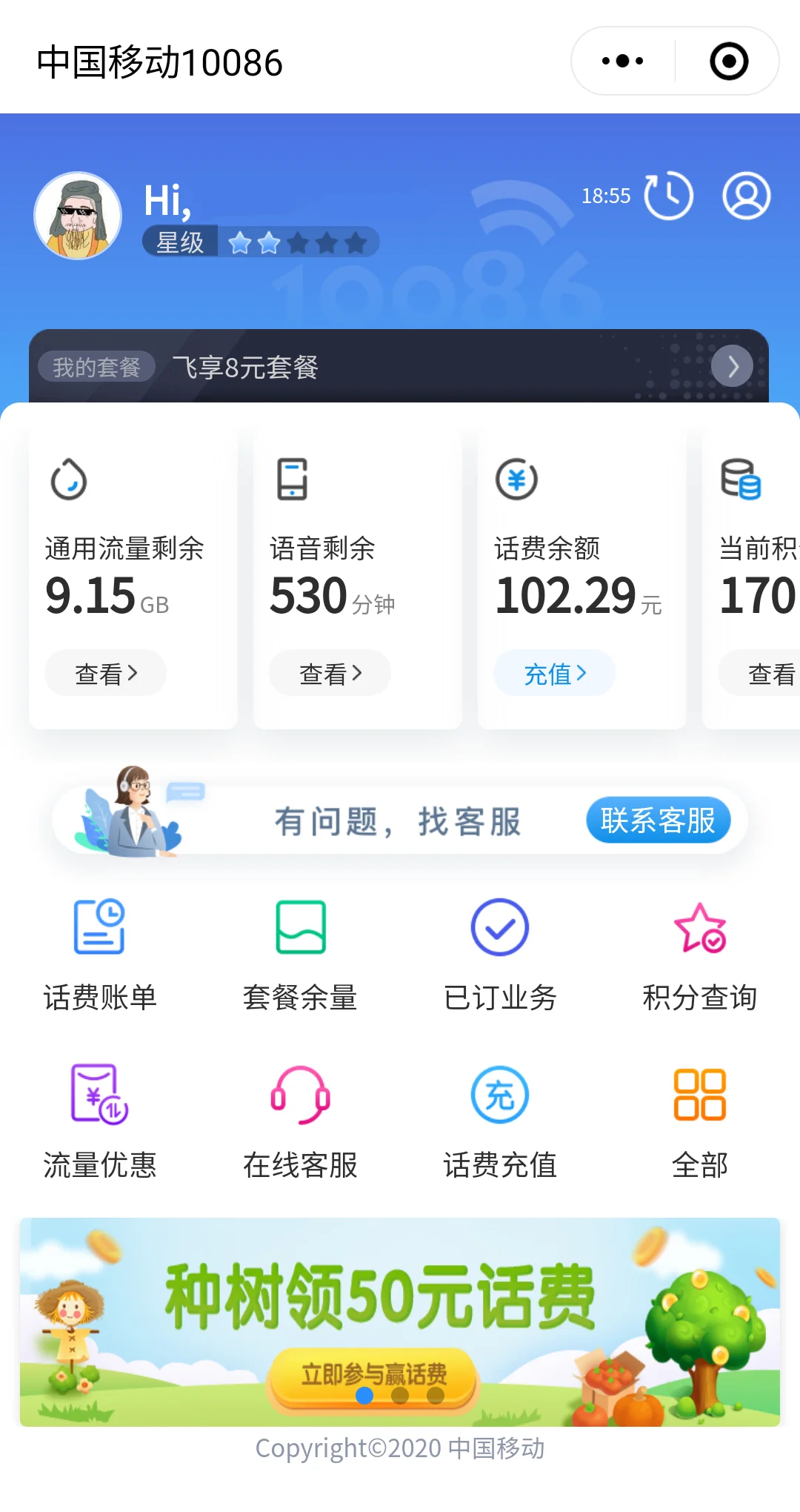 中国移动10086小程序,流量话费积分触手可及,各种优惠停不下来,快快使用吧!