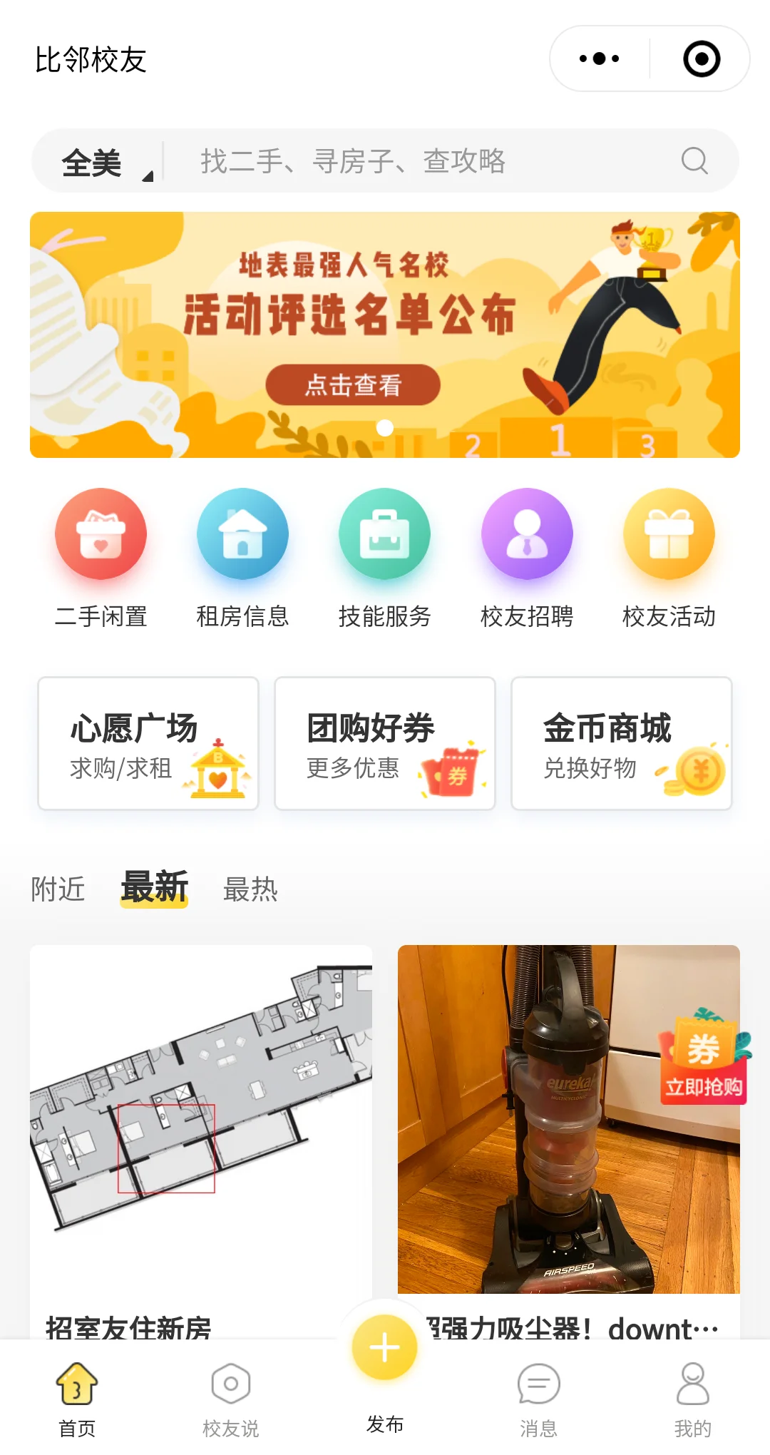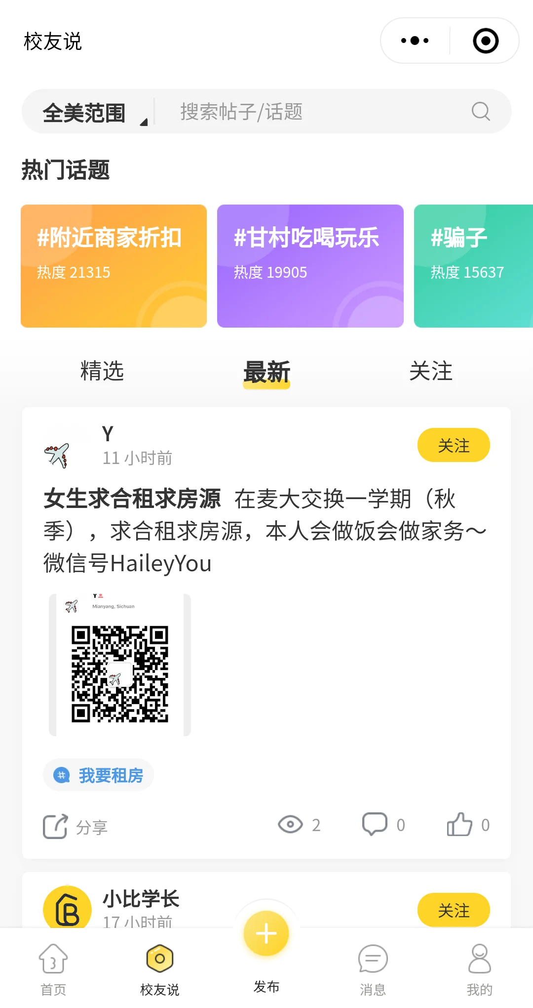 专属于海外学子的校园问答,二手交易、租房找室友、汽车买卖等互助社区平台。