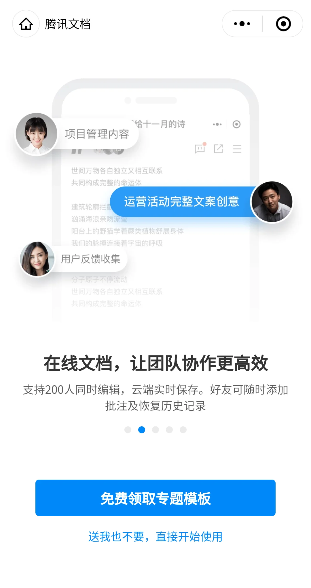 腾讯文档是一款支持随时随地创建、编辑的多人协作式免费文档工具,目前已支持word和Excel 类型的文件,具有多端同步、云端实时保存、支持多人协作编辑等权限。